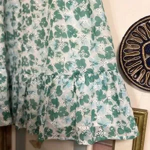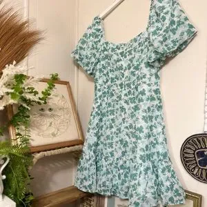 ACOA blue and green floral eyelet bustier puff sleeve dress (M)