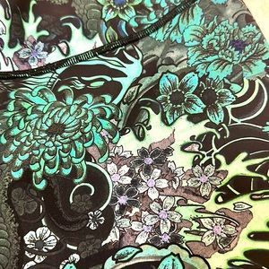 These are by far my favorite design- Gorgeous emerald green floral Crop leggings size a size 12- Hard to find in this size- Tag still in tact/ Like new. I lost weight and never got a chance to really wear them- Wonder Under HR with a 17 inch inseam