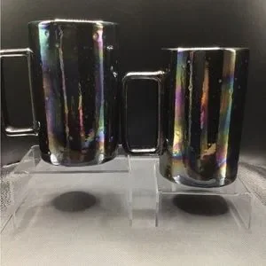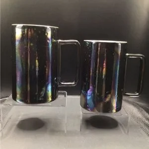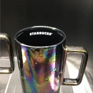 I bought these from inside Starbucks cafe, this is a grande mug and tall mug. The tall holds 12 ounces and the grande holds 16 ounces. No flaws, new with tags attached.