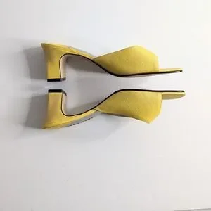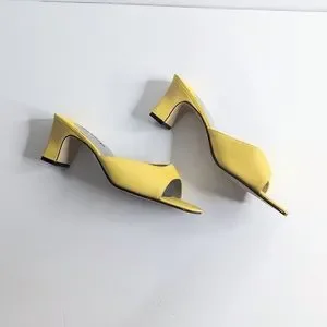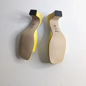 VTG Square Toe Chunky Heel Yellow Slip On Heels