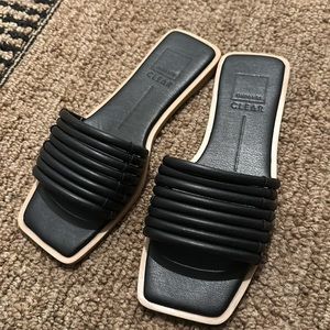 Dolce Vita Stella slide sandal in black, size 8. Leather with cushioned sole. Only worn once!