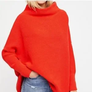 Free People * Ottoman Slouchy Pullover Tunic Sweater size XS Orange