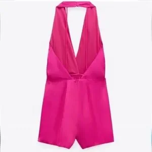 ZARA SATIN EFFECT SHORT JUMPSUIT ROMPER FUCHSIA Pink size L