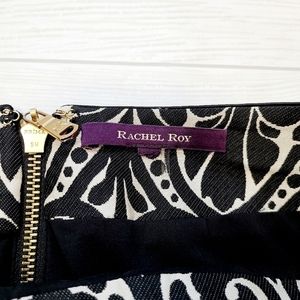 Details- Hidden banded waist - Back zip closure - Jacquard paneling - Pencil silhouette -
