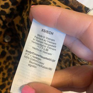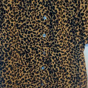 Madewell Animal Print Short Bubble Sleeve Crew Neck Button Up Shirt Womens XS