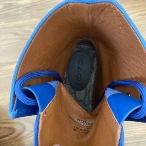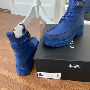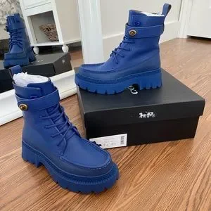 Coach Leather Lug Style Boots with Gold Turnlock Closure in Sapphire Blue 6