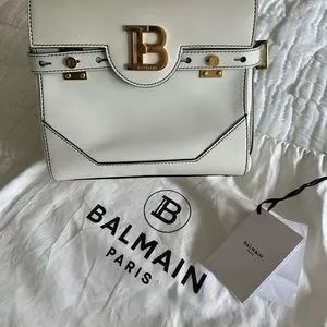 Balmain beautiful, white off shoulder or Crossbody bag. In like new condition. Warren only a few times. It’s a white leather bag. It comes with dust bag and all paperwork.