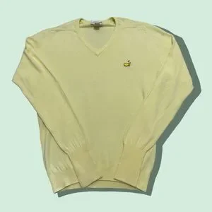 Men’s Vintage Augusta National Golf Shop Light Yellow V Neck Sweater Size XXL