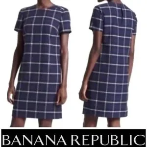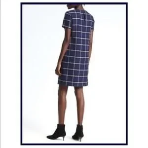 HI SUMMER ☀️ 💙 Banana Republic Women's Short Sleeve Blue Grid Sheath Dress