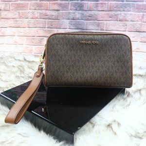 Michael Kors Clutch Jet Set Item Md Travel Pouch Wristlet Brown Newet