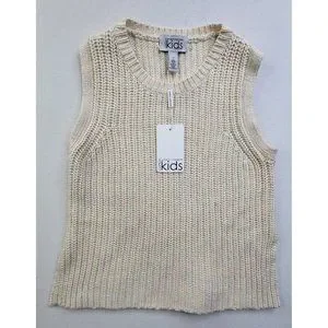 NEW Autumn Cashmere Girl's 12 Cream Neon Specs Sleeveless Knit Sweater Cropped