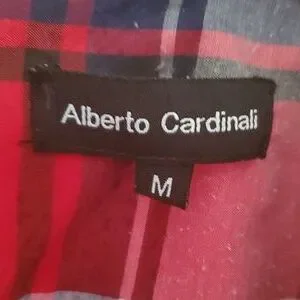 good used condition. Alberto Cardinali. Medium. 80% polyester. 20% cotton. red, blue, white and red. length 30 inches front and 31.5 inches back. chest 22.25 inches. 😃 B2