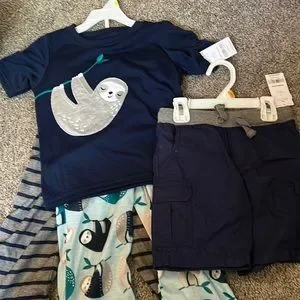 Shirt, two pair pants, and shorts, so cute, bought for my grandson and my daughter forgot to take home and now missed the return time, brand new!