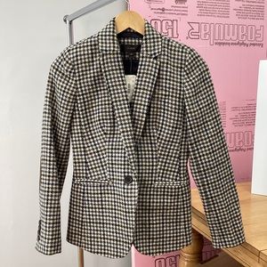 Retired Studio inventory from Sony Pictures. Gorgeous and amazing quality. Lined. Luxury. Size 00. J. Crew Wool Houndstooth Blazer with Elbow Pads NWT