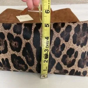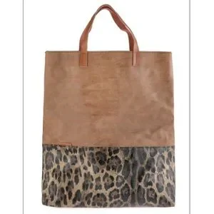 Brown Faux Leather with Leopard Print Tote. Gorgeous addition to your accessories wardrobe. Throw in all the essentials for the day. Great work bag as well. Detachable adjustable shoulder/crossbody strap. Top zip closure. Center interior zip top pocket, 2 side slip pockets & 1 side zip pocket. Lined interior. New boutique item with tag.