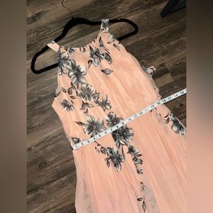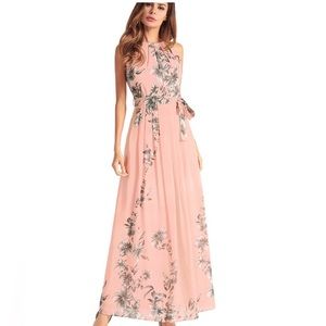 Ruiyige Pink and Grey Formal Sleeveless Maxi Chiffon Halter Neck Vintage Dress