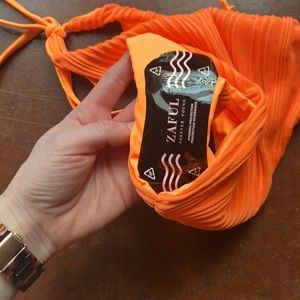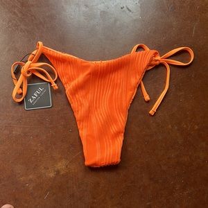 NWT Zaful Neon Orange Ribbed High Cut Tie Bikini Bottoms