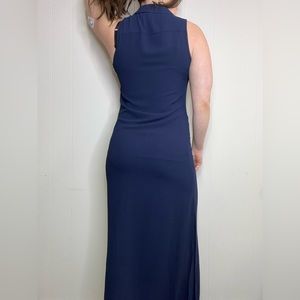 Micheal Kors Navy Sleeveless Maxi Dress With Chain Lace Up Neckline