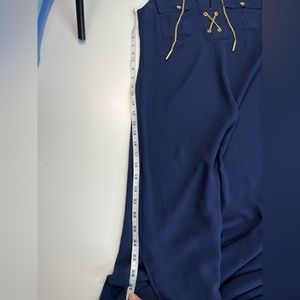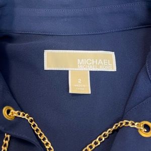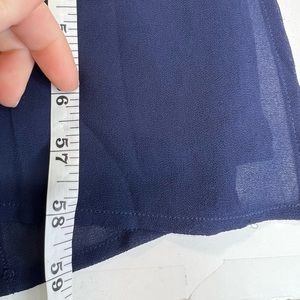 Size 2 but does fit oversize/more like a size small. Navy sheer outer (lined) dress with a cool gold chain lace up eyelet/grommet front. Super classic and perfect for spring and summer. Especially great for vacation! Effortlessly stylish and timeless. Measurements in photos. Great used condition, with no noted flaws or issues.