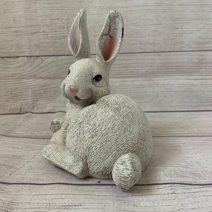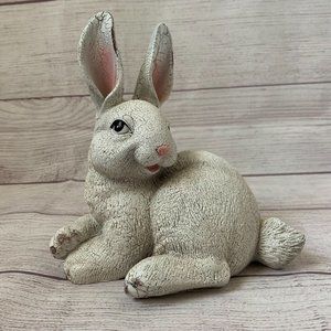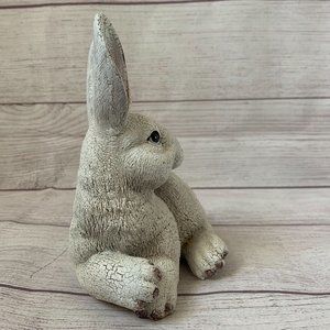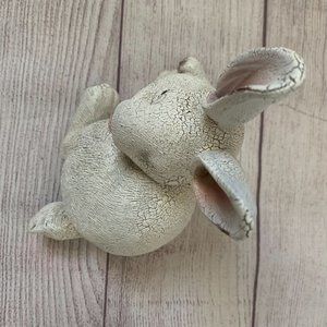 Bunny Rabbit Figurine Statue White Textured Detail Rustic Crackled Ears 6 3/4"H