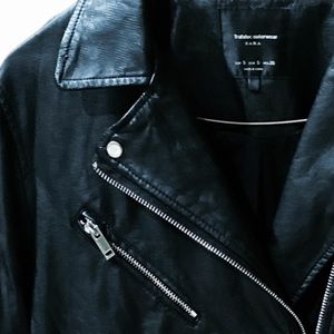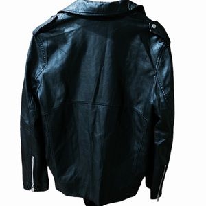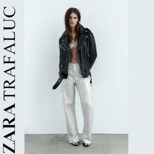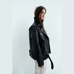 NWOT Zara Trafaluc Oversized Moto Faux Leather Jacket. Size Small. Black. Silver Hardware. Lapel Collar. Envelop Zipper. Long Sleeves With Zip Cuffs.Front Metal Zip Pockets. Epaulettes. Self Belt With Buckle. Front Metal Zip Closure.100% Polyester