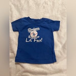 L.A Dodgers t-shirt in size 6 months. Says “Dodgers biggest Lil fan” on the front. Stretchy, soft t shirt material. No holes or stains.