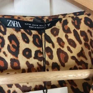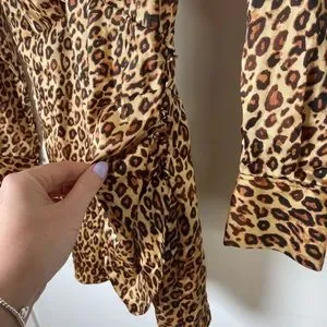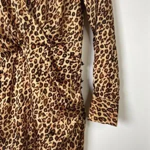 Zara Leopard Print Wrap top, ruched side, long sleeve mini dress - size M