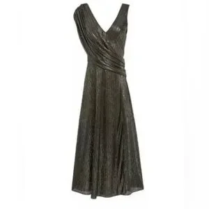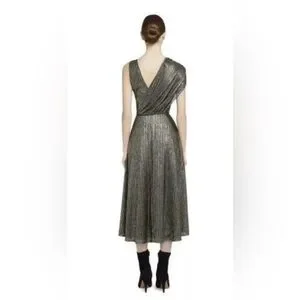 Alice & Olivia metallic drape front Roxy dress. Size 6.