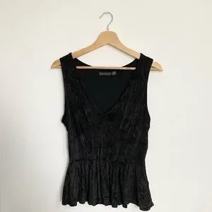 Zara Size M Black Velvet Style Sleeveless Peplum hem