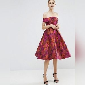 ASOS Bardot off the shoulder collar occasion midi dress size 16 stiff zip