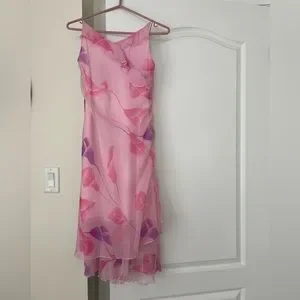 BEAUTIFUL vintage pink y2k fairy dress! So cute and flattering on the body. On trend with the ruffles and pastel colours, soooo cute! This piece is super unique and perfect for any event or date night! It has ruffling and ruching details along the side. Such a gorgeous pink shade. Size Small.