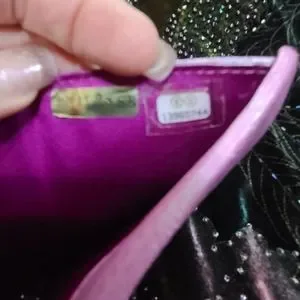 This sweet little Rare Camelia wallet has been professionally refurbished in a pink ever so slight purple hue to it shimmer w the outside having a special top coat and sealed again. It has no rips tears pretty clean overall inside having a plum purple satin material. Outside has minor normal wear. This will come w Shopping bag Dust bag magnetic box w chanel tissue paper and Ribbon. Authenticity Card.