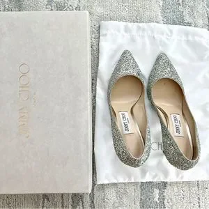 NIB Jimmy Choo Romy 85 Glitter Pointy Toe Pumps