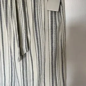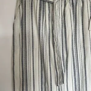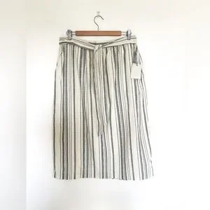 Womens Deane & White Skirt UK 16 A-Line Linen Stripe Cream Midi Length Pockets