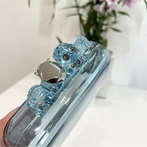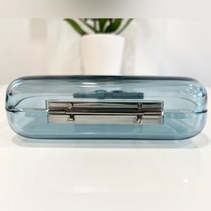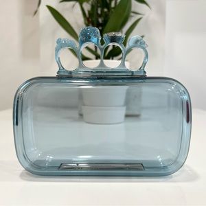 This version of the label's popular 'Skull Four Ring' clutch is made from sheer pale-blue acrylic with silver hardware.