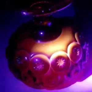 A gorgeous midcentury gem. This glass compote is unmistakable MCM quality - thick, weighty glass. This pedestal dish measures approximately 5"X6". In excellent shape no chips, cracks, etc. Perfect for midcentury modern, Hollywood Regency, and other maximalist decor styles.