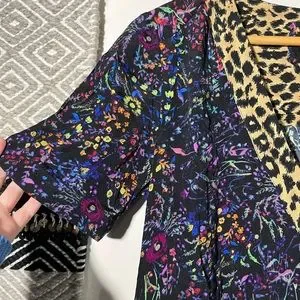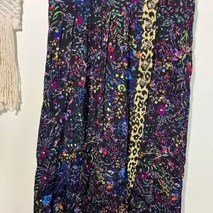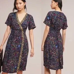 Anthropologie Maeve floral and leopard midi dress with buttons down the front .