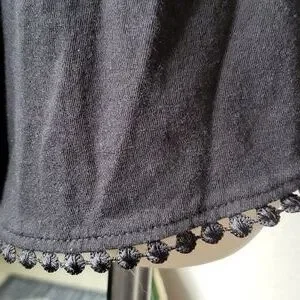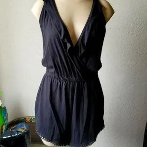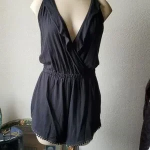 Like new, Romper black with ruffle and trim so cute split up the sides of short