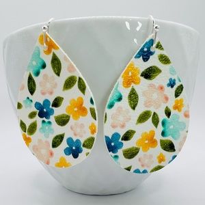 🌼Spring flowers teardrop earrings. Faux leather, lightweight, handmade. Nickel free earwire.