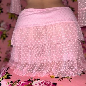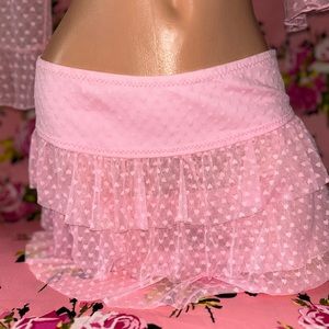 Pink Black and white lace with Swiss heart dot pattern mesh skirt size s-m