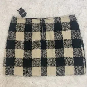 Forever 21 PLUS Black & White Plaid Wool Blend Mini Skirt