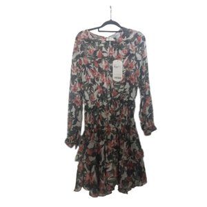 NWT Pilgrim Lola mini dress ruffles, sheer fabric, long sleeves, open back. Layered skirt section.