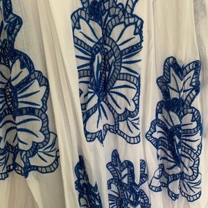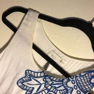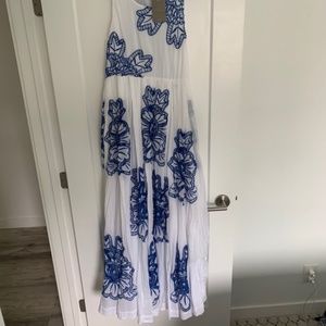 Anthropologie HD in Paris Maxi Dress White with Embroidered Blue Flowers - L