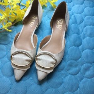 Franco Sarto women’s flat shoes white snake printed leather upper