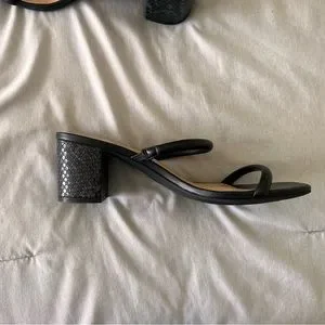 A new day black square toe heel. 1.5” block heel. Faux black snake skin outsole.