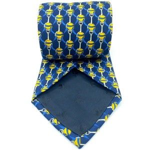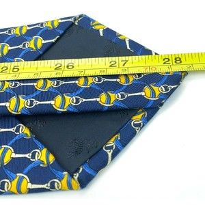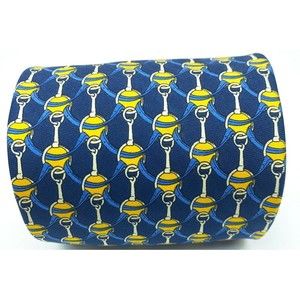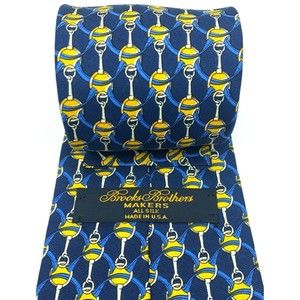 BROOKS BROTHERS MAKERS All Silk Equestrian Motif Blue Yellow Necktie Made in USA