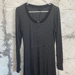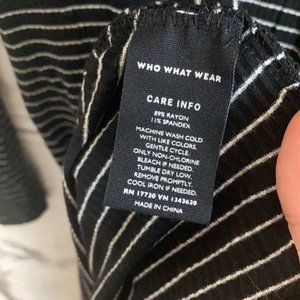 Who what wear striped stretchy long sleeved midi dress . Gently used condition. Length is roughly 46.5 inches. Bust is roughly 17.5 inches across. Waist is roughly 14 inches across. Very stretchy.