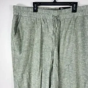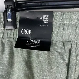 Jones New York Women 1X Crop Ankle Pants Linen Blend green White Cuffed elastic. No flaws Smoke free home Offers welcome Approximate measurements laying flat: Waist 18 inches Rise 15 inches Inseam 25 inches