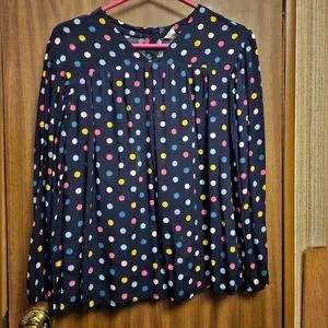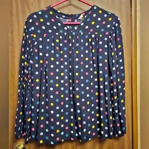 This is a Gap Kids Blck Blue Multi Color Polka Dots Blouse XL long Sleeve Double Lined. This item is preowned in used condition. This item has been used once and then place in the closet. This item is in great condition, may need to be pressed to remove wrinkles.