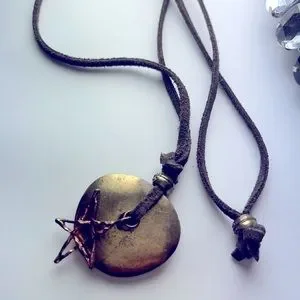 This is a stunning vintage unique handcrafted Copper pendant with a star and suede chain 24 inches